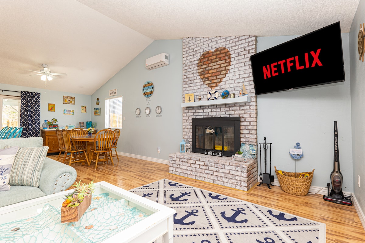 Checken Sie ein, entspannen Sie sich und erholen Sie sich im „The Tropics in Bullhead“! Unser Haus mit drei Schlafzimmern und zwei Bädern befindet sich auf einem über 10.000 Quadratfuß großen Grundstück mit einem in den Boden eingelassenen Pool mit Baja-Regal sowie einem Whirlpool für die Nächte nach einem Tag auf dem Fluss oder See. Im Inneren findest du den gleichen Komfort wie zu Hause mit bequemen Betten, voll ausgestatteter Küche und Fernsehern in fast jedem Schlafzimmer. Wir lieben es, uns hier zu entspannen, wann immer wir können, und hoffen, dass du und deine Familie auch wertvolle Erinnerungen sammeln!