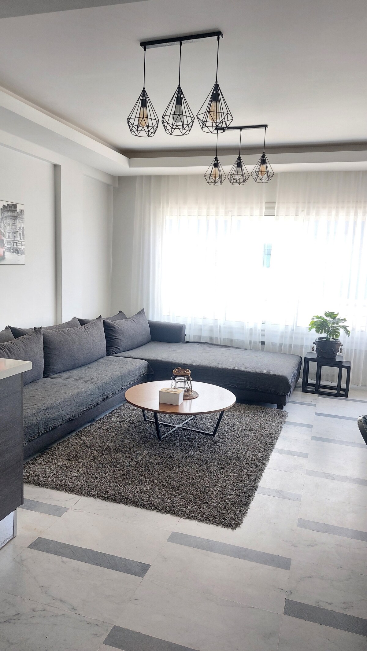 Große luxuriöse Wohnung mit einem Doppelbett und auch einem Doppelschlafsofa im 3. Stock eines brandneuen Gebäudes, das sich in der Nähe aller Annehmlichkeiten befindet, Krankenstation im Erdgeschoss des Gebäudes, Carrefour Ben Yaghlene (großer Lebensmittelladen), Restaurants und Cafés