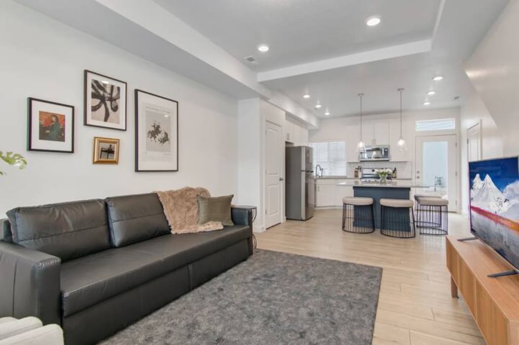 Spacious 2,000 sq ft private 3BR suite sleeping up to 8. Full basement with 1 bathroom, private entrance, and bright living spaces — ideal for families, hospital visits, and small groups. Location Just off I-15 — 30 min to Provo & SLC, 3 mi to Lehi PCH. Near parks, outlets, and restaurants. The space Private entrance, full kitchen, comfy beds, fast Wi-Fi. Light household sounds upstairs 7 AM–10 PM. Not suitable for parties or events. Guest access Entire private suite with separate entrance.