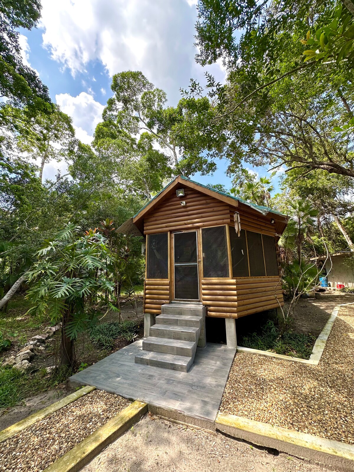 „Übernachte in einer Blockhütte in einem Affenreservat in der Nähe von Belize City Eingebettet in das atemberaubende Howler Monkey Reserve. Diese natürliche Kiefernhütte bietet eine Reihe von Vorteilen wie WLAN, Flughafen-Shuttle, Klimaanlage, Fahrrädern ( Radtour zum Brüllaffen-Santuary und Restaurant, Lebensmittelgeschäft ) Kanus und personalisierte lokale Touren. Erkundige dich nach unserem Shuttleservice vom Flughafen zur Hütte , Rückfahrt - Gebühr. Dein Abenteuer wartet!“Schlüssel