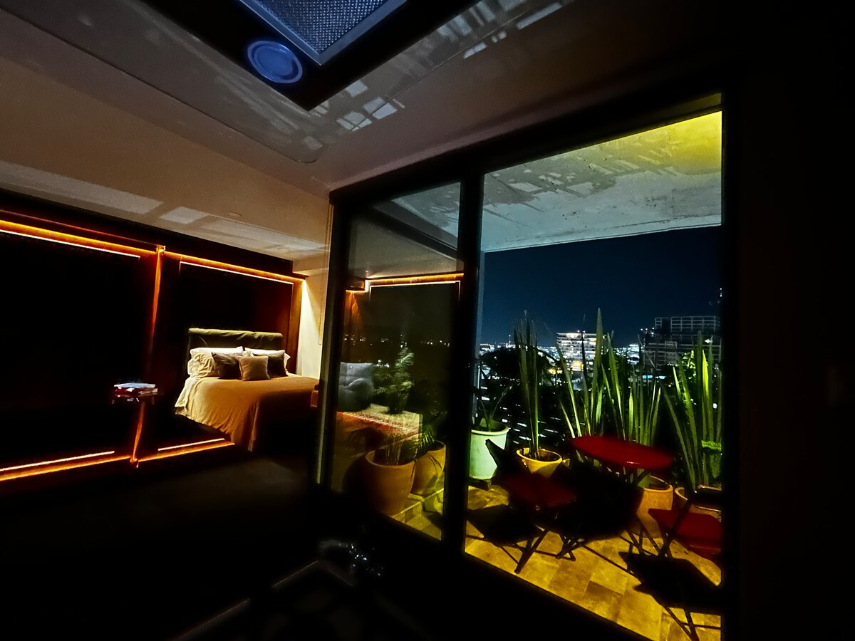 Exklusives Loft am Blvd. Campestre in Naran, Diamante de León Gto. Perfekt für romantische Kurzurlaube, Remote-Arbeit und längere Aufenthalte. In der Nähe der Plaza Mayor, des Parque Metropolitano sowie der besten Restaurants und Bars der Stadt. Sie verfügen über Klimaanlage, WLAN, Kingsize-Bett, Smart-TV, Schreibtisch, Küche, Schlafsofa, große Terrasse mit Wohnzimmer, Esszimmer und Grill im Freien, mit dem besten Coworking-Bereich, Paddle-Tennisplatz, Spielothek und privatem Parkplatz, überdacht mit Sicherheit rund um die Uhr.