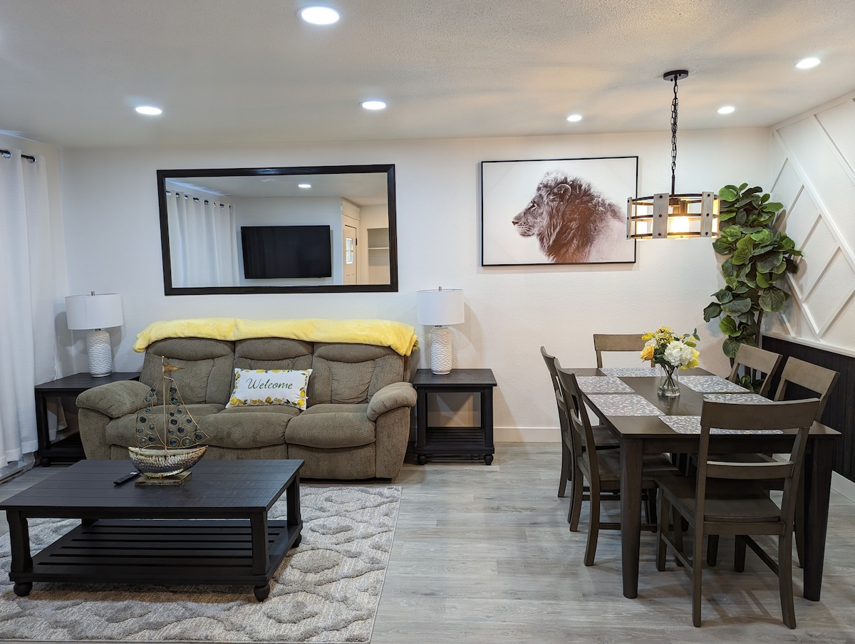 KEINE BESUCHER KEINE HAUSTIERE RAUCHEN VERBOTEN Ruhig und abgeschieden, ist diese Wohnung mit einem Schlafzimmer (75 m²) das perfekte Refugium für alle, die einen ruhigen Ort zum Entspannen wünschen. Geräumig und komfortabel, ist sie komplett mit einer Küche, Grundausstattung, Ziply Glasfaser-WLAN, 55-Zoll-Roku-TV, Feuerstelle im Hinterhof und Whirlpool ausgestattet. Du bist nur ein oder zwei Meilen vom Mingus Park, der Coos Bay Waterfront und dem Mill Casino entfernt. Und nur 8-12 Meilen von den Stränden des Ozeans entfernt!