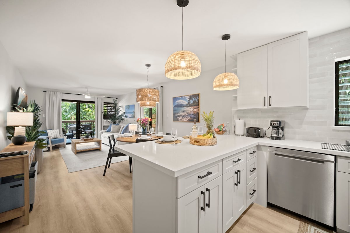 Lehne dich zurück und entspanne dich – in dieser stilvollen Unterkunft. Wir haben gerade eine komplette Renovierung dieser Einheit abgeschlossen, sodass du einer der Ersten sein wirst, die eine Einheit mit ALLEM NEUEN betreten. Diese Einheit liegt nur wenige Schritte vom weltberühmten Poipu Beach entfernt, wo Schildkröten und hawaiianische Mönchsrobben häufig auf dem Sand schlafen. Nur wenige Gehminuten von mehreren Restaurants und Bars und eine kurze Fahrt von The Shops at Kukui'ula mit vielen Einkaufsmöglichkeiten und Restaurants entfernt.