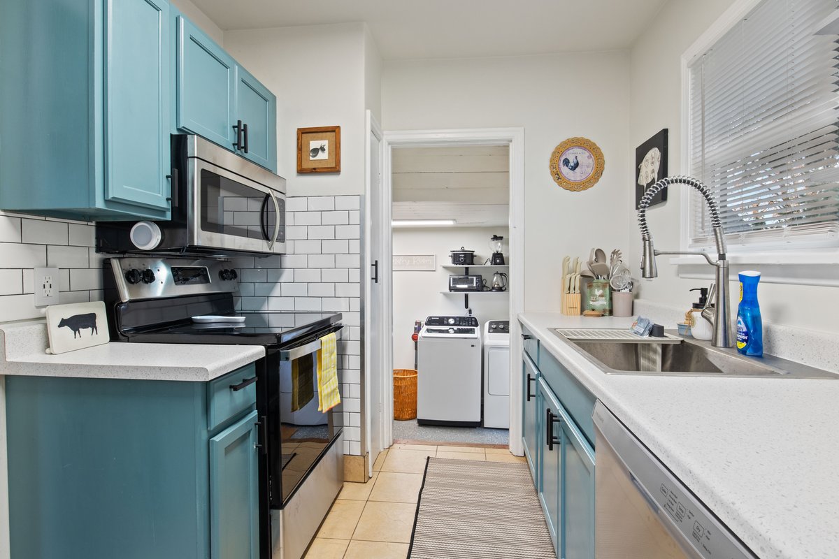 Willkommen in deiner Happy Landing - einem ruhigen Refugium, das mit einem Flüstern der Ägäis gestaltet wurde. Dieser geräumige Rückzugsort mit 2 Schlafzimmern bietet Ruhe für den Reisenden, den Heiler oder den Sucher der Einfachheit. ~Über 1.000 Quadratfuß Fläche ~Zwei Schlafkammern: ein Kingsize-Doppelbett, ein Queensize-Doppelbett ~Moderne Dusche, Waschmaschine und Trockner zum Erfrischen und Erneuern ~Eine Küchenzeile mit einem gefilterten Wasserspender, ideal für die Zubereitung eines Morgencafés ~Zugang zu einem Garten mit einem Essbereich und einem Grill
