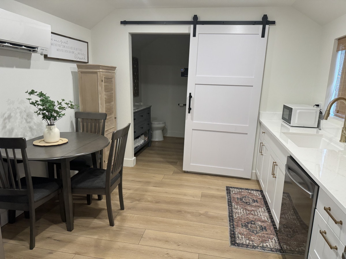 Willkommen in unserem charmanten, zentral gelegenen Tiny Home, nur wenige Minuten von der Innenstadt von Billings, beiden Krankenhäusern und dem Flughafen entfernt. Dieser moderne Raum verfügt über hohe Decken, große Fenster, die das Haus mit natürlichem Licht füllen, und ein Queensize-Bett, das einen erholsamen Schlaf verspricht. Genieße den Komfort eines Kühlschranks, eines Backofens/Herdes und einer neuen Waschmaschine und eines Trockners in voller Größe. Mit atemberaubenden Fliesenarbeiten und beheizten Badezimmerböden haben wir einen Raum geschaffen, in dem du dich wirklich entspannen und wie zu Hause fühlen kannst.