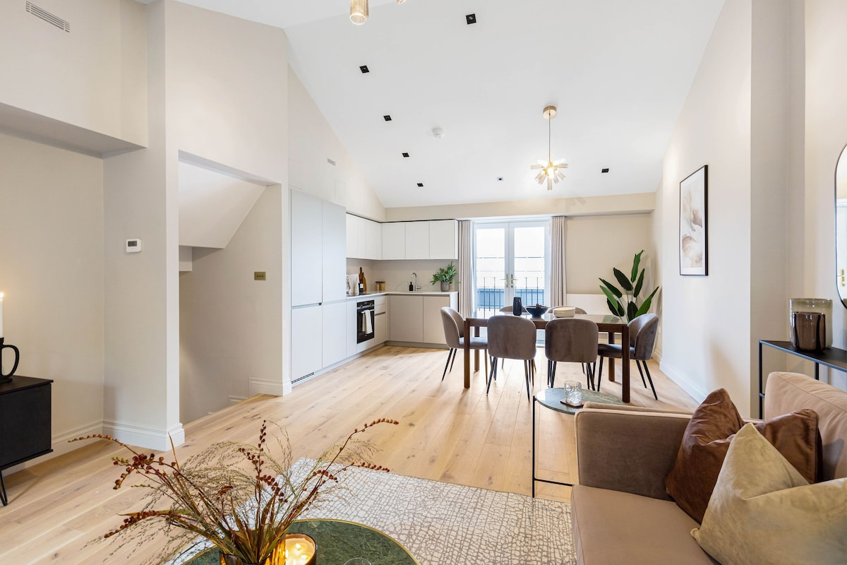 ***BRANDNEU!*** Entdecke urbane Eleganz in unserer brandneuen, stilvollen, modernen 1-Zimmer-Wohnung. Genieße den offenen Wohnbereich und die voll ausgestattete Küche. Dieser brandneue, sorgfältig gestaltete Raum verfügt über große Schiebefenster mit Balkonbereich und bietet viel Licht und städtische Aussicht. Entspanne dich im luxuriösen Kingsize-Bett, das mit Bettwäsche in Hotelqualität bezogen ist. Perfekt gestaltet und mit kostenlosen Parkplätzen ausgestattet, ist dies der ultimative luxuriöse Londoner Schlafplatz!