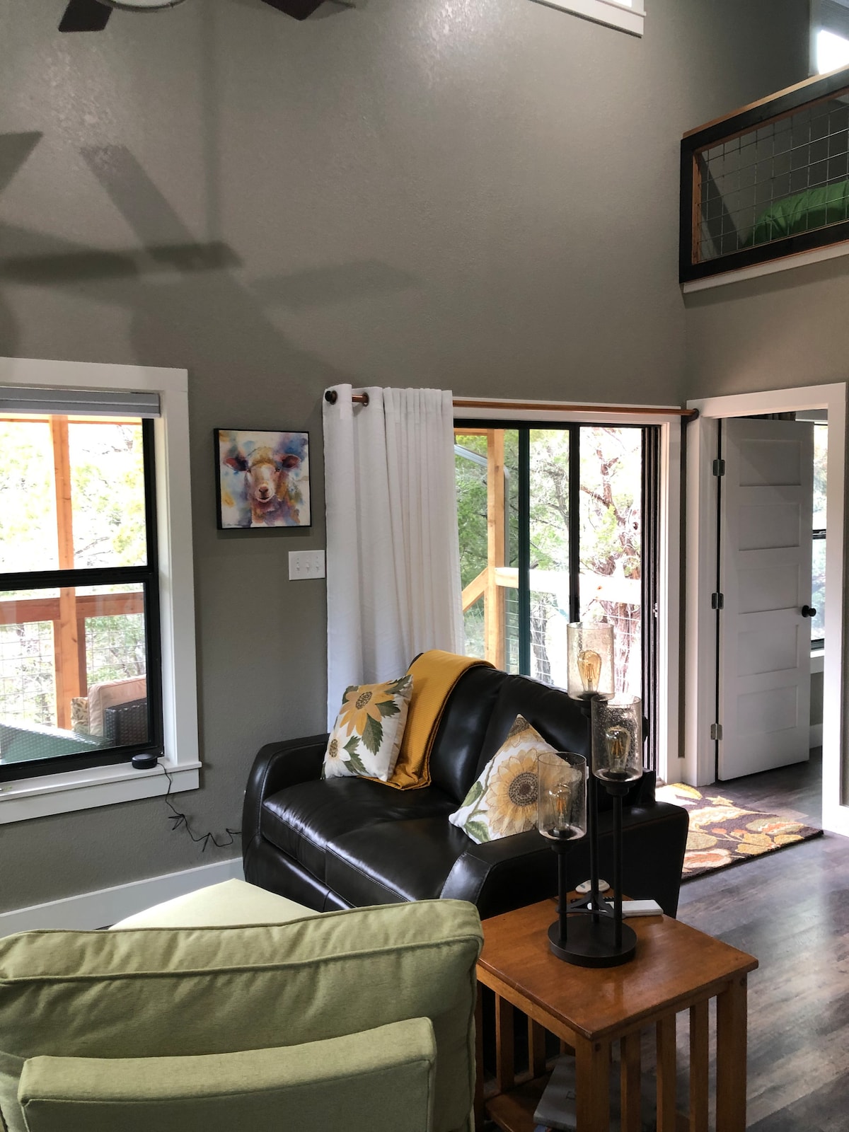 Herzlich Willkommen bei The Yellow Door! Dies ist eine renovierte 1-Schlafzimmer-Hütte mit einem geräumigen Loft, das für bis zu 6 Gäste komfortabel und stilvoll gestaltet ist. Mit modernem Bauernhaus-Flair und durchdachten Details ist es die perfekte Mischung aus Charme und Komfort. Entspannen Sie sich auf der großen, überdachten Veranda mit bequemen Sitzgelegenheiten im Freien – ideal, um Ihren Morgenkaffee zu trinken oder sich nach einem Tag voller Spaß zu entspannen. Eingebettet in einem schönen Wohnmobil-Resort, wo du alle Annehmlichkeiten des Resorts genießen kannst: Pool, Whirlpool und mehr!