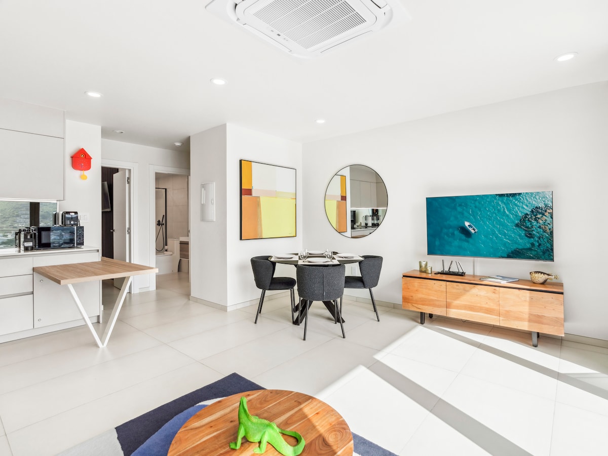 Gönn dir das äußerst stilvolle und moderne Apartment mit Meerblick im exklusiven Little Bay Hill. Diese geräumige Umgebung, die als Familie genossen werden kann, verfügt über eine Terrasse mit herrlichem Meerblick, einen privaten Pool, eine Master-Suite (japanisches Kingsize-Bett und ein begehbarer Kleiderschrank), eine Schlafzimmersuite mit zwei Einzelbetten (könnte in ein Kingsize-Bett umgewandelt werden). Willkommen bei Terraces Little Bay!
