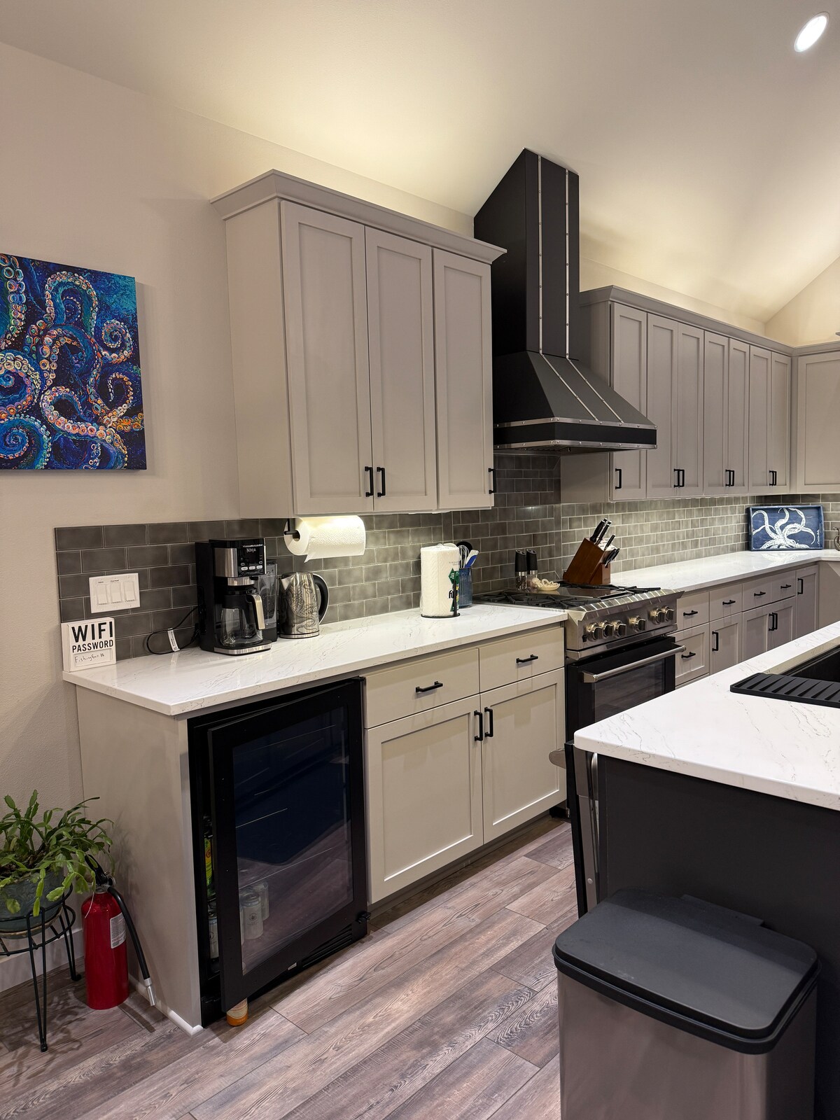 Ketchikan ist so eine einzigartige und schöne Stadt, wir wollten, dass unser Zuhause passt! Der gemütliche Kraken wurde 2024 auf der Bergseite mit Blick auf die Inside Passage mit unvergleichlichen Sonnenuntergängen gebaut, die dir das Gefühl geben, auf der Spitze der Welt zu sein! Nur 13 Fahrminuten vom Flughafen entfernt befinden wir uns am nördlichen Ende von Ketchikan. Erbaut auf Komfort und hochwertige Geräte in der Küche mit BlueStar.