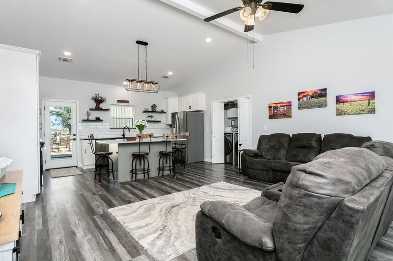 Dieses charmante Ferienhaus aus den 1940er-Jahren befindet sich auf zwei privaten Acres zwischen der Innenstadt von Fredericksburg und dem 290 Wine Trail. Mit eigenem Tor und Holzofen kannst du Sonnenuntergänge auf der Veranda, ruhige Morgen mit Kaffee und Wildtierbeobachtung genießen. Das Wohnzimmer und die Küche im Vintage-Stil verleihen dem Raum einen gemütlichen Charakter. Günstig gelegen: 5 Meilen von Luckenbach, 1 Meile von Bankersmith, 10 Minuten zum Wine Trail und 10–15 Minuten zur Innenstadt von Fredericksburg.