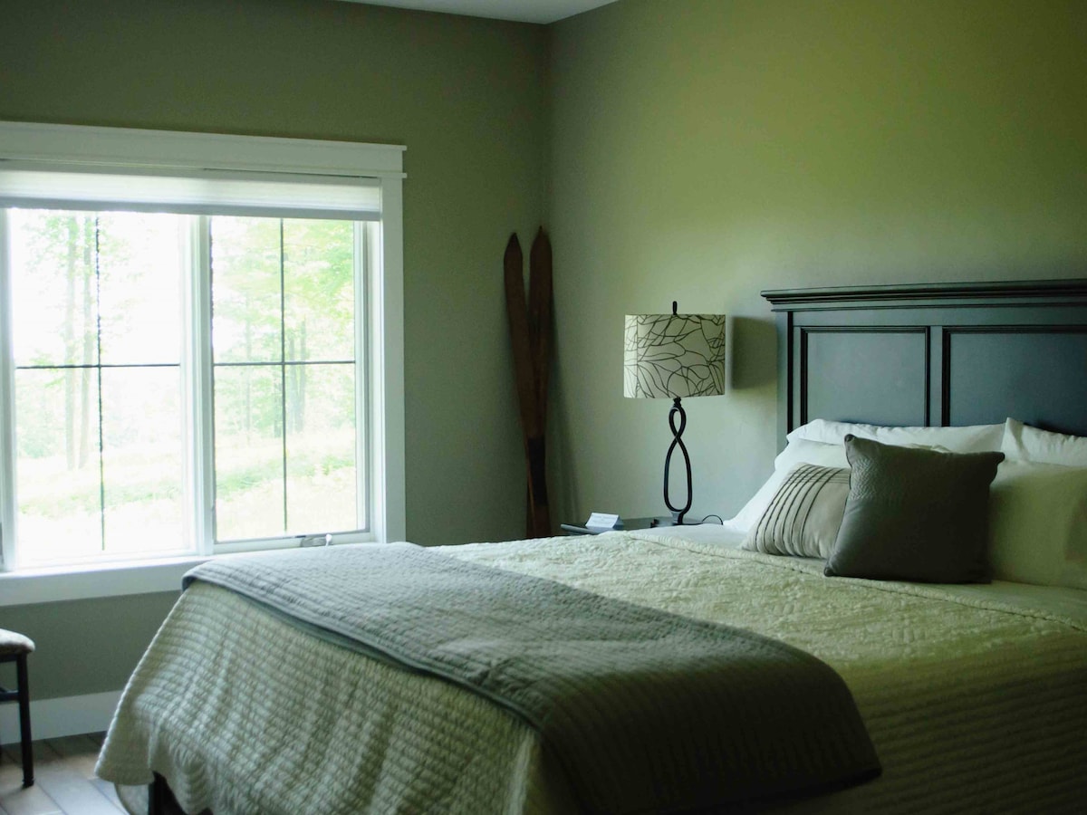 Keep cool in the summer and inspired in the winter with our Ski Themed room! The Inn is located on a piece of land that's called the "Sugarbush" because the Native Americans used the land to tap the trees for Maple syrup. Today the majority of the Sugarbush is used by Mt.Ashwabay who maintain beautiful cross country and mountain biking trails. Room Amenities: Lake view, private full bathroom, King size bed, mini fridge, wifi, air conditioning, hair dryer, towels, soaps and lotion.