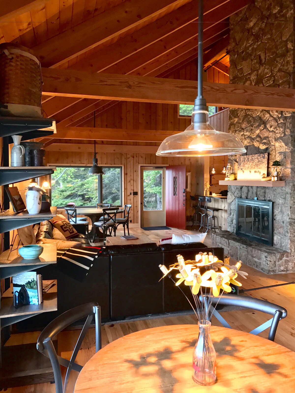 Der ultimative Rückzugsort für Outdoor-Enthusiasten. Das Woodland Chalet ist umgeben von üppigem, borealem Wald, Wildtieren und gewundenen Wanderwegen. Eine voll ausgestattete Küche, ein Einzelbadezimmer und Schlafgelegenheiten für drei Personen. Das Loft-Schlafzimmer im zweiten Stock verfügt sowohl über ein Queensize-Bett als auch über ein ausziehbares Einzelbett, das auf das gewölbte Wohnzimmer und den Gaskamin blickt. Große abgeschirmte Veranda, die sich zum Entspannen und Essen bei Tag und Nacht eignet.