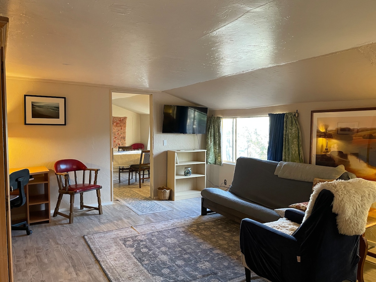 Blumen, Blumen, Blumen. Ein gemütlicher kleiner Raum in der Stadt Dixon mit Flüssen, Obstgärten, Restaurants, Skifahren, Wandern, Weingütern und Brauereien , Lebensmittelgeschäft und Bibliothek in der Nähe. Ein komfortables Haupt-und 2. Schlafzimmer oder Wohnraum, ein neues individuelles Bad und eine kleine, aber voll ausgestattete Küche zwischen den Privatzimmern.Eine schöne Terrasse, um den Sonnenauf-und -untergang über den Bergen zu beobachten, dein Frühstück zu genießen, während du Wildtiere beobachtest oder tolle Fotos bewunderst.