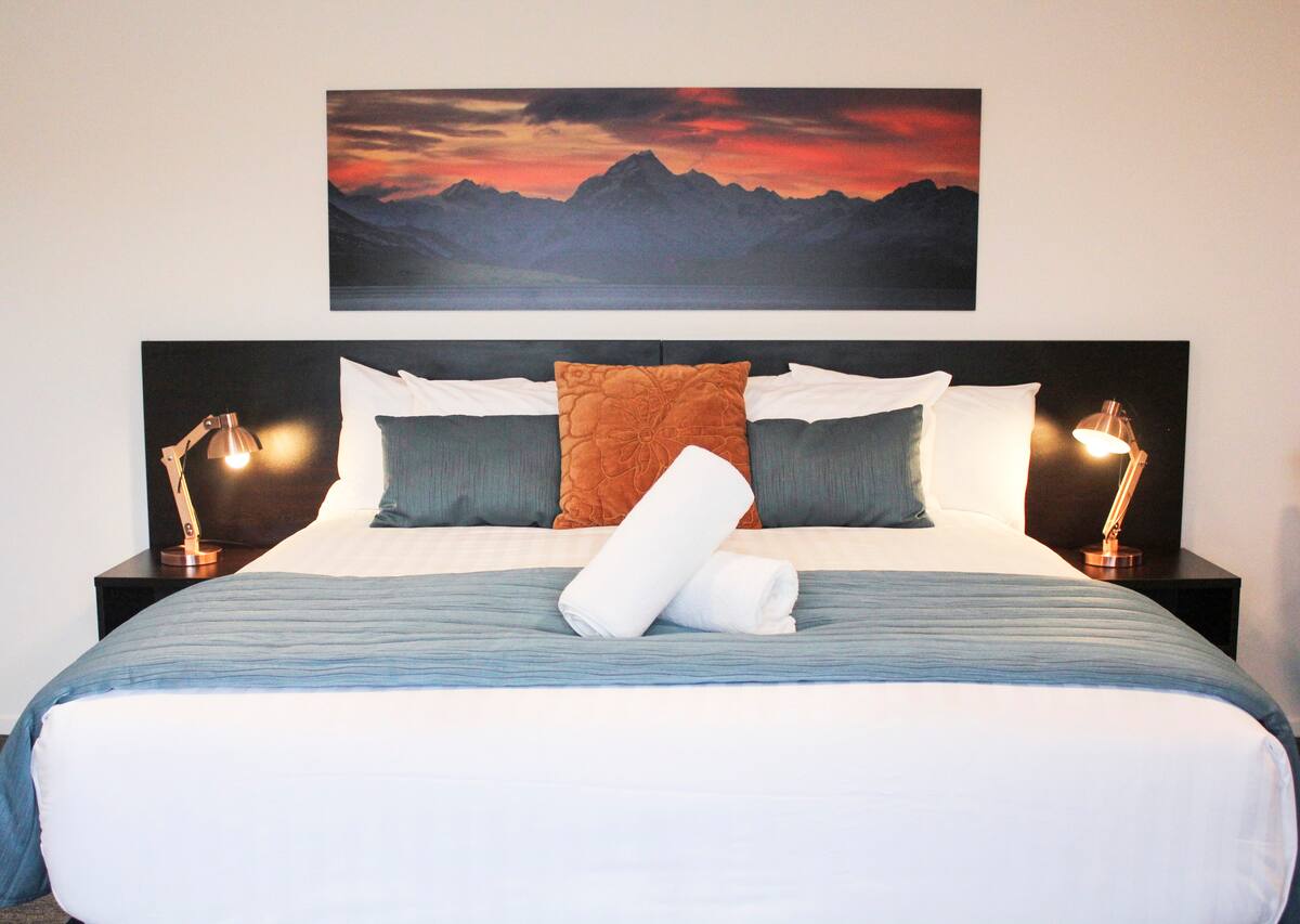 Entspanne dich in unserer modernen, eigenständigen Unterkunft in Twizel - perfekt gelegen, um die atemberaubende Region Mackenzie zu erkunden. Unser Motel liegt direkt am State Highway 8, gegenüber dem Ben Ohau Golf Course und ist nur wenige Gehminuten von Restaurants, Cafés und lokalen Annehmlichkeiten entfernt. Twizel bietet einen atemberaubenden Blick auf die Berge, goldene Tussock-Landschaften und Gletscherseen, wobei der Aoraki/Mt Cook Nationalpark nur eine 45-minütige malerische Autofahrt entfernt ist.