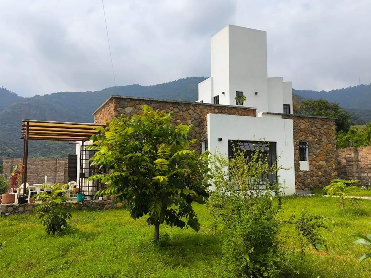 Beautiful house surrounded by nature, pool and jacuzzi, spectacular views, terraces and fountains, you will feel in the countryside, you are just 8 min. walking to the Plaza of Malinalco. The architecture of the house integrates with nature, along with a beautiful decoration. It has all the comforts and equipment. The San Juan neighborhood is the safest in Malinalco. * One pet is allowed, you should consult first and know the pets policy.
