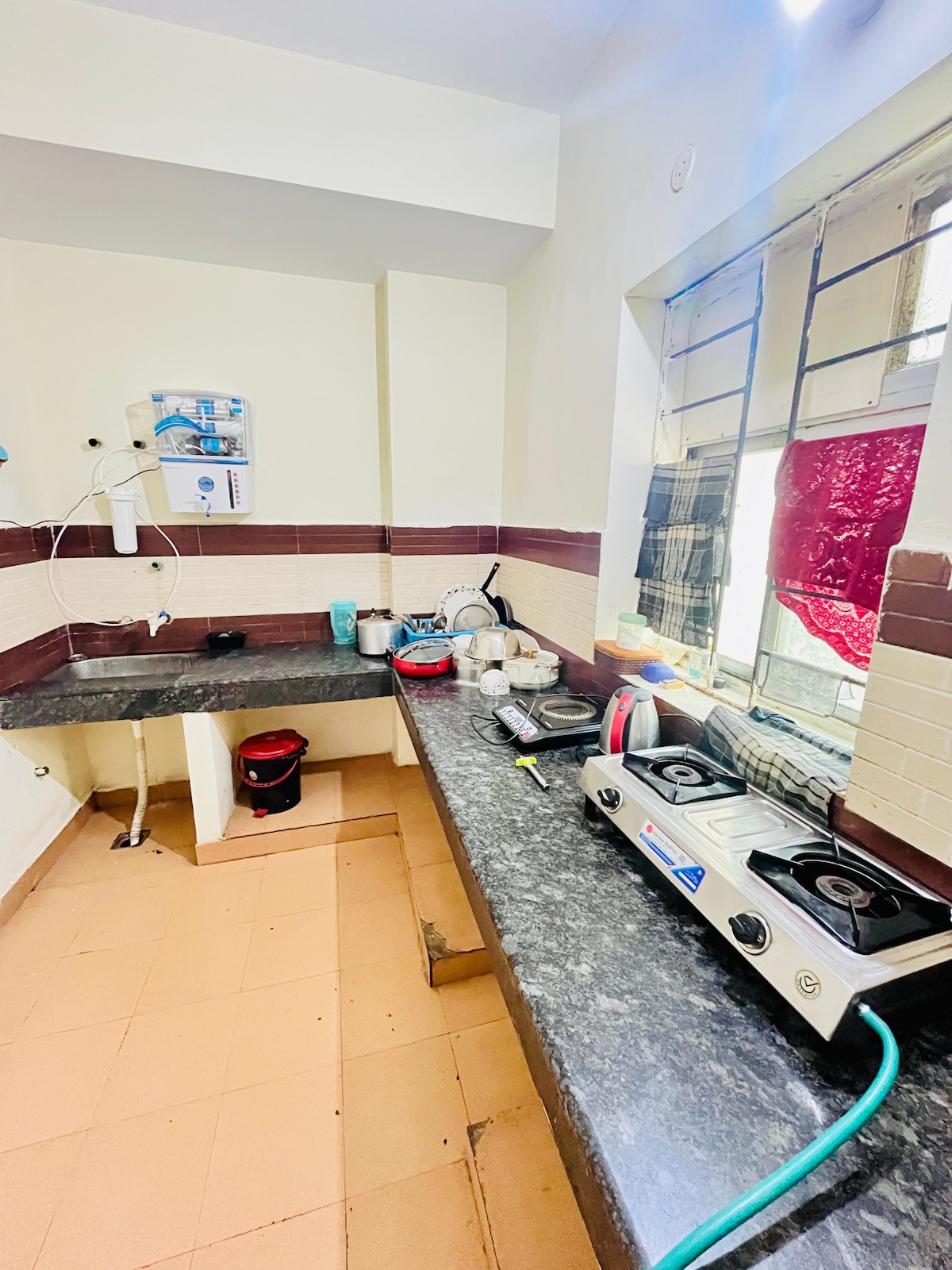 Übernachte in unserer geräumigen 3-Zimmer-Wohnung mit 1600 Quadratfuß im Zentrum von Patna. Genieße modernes europäisches Design, eine große Terrasse mit Blick auf die Stadt und viel Platz zum Arbeiten und Entspannen. Zu den Annehmlichkeiten gehören Smart-TV, WLAN, Badewanne, Schlafzimmer mit Klimaanlage und gemütlichen Betten, Küche, Wäscherei, Kone-Aufzug und Parkplatz! Unsere Terrasse im 4. Stock, die an die Wohnung angeschlossen ist, bietet einen Panoramablick auf die Skyline von Patna. Perfekt für anspruchsvolle Reisende, die Luxus suchen!