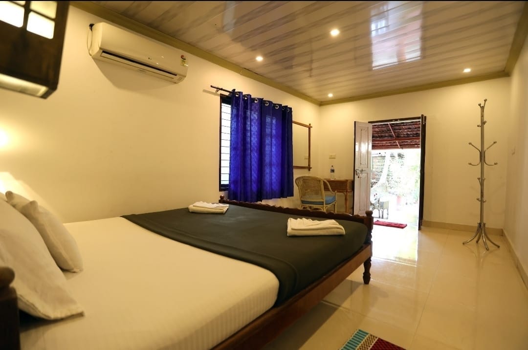 Dies ist ein malerisches Seehaus in den Backwaters von Vaikom, Kumarakom, Kerala. Das geräumige Haus liegt inmitten von viel Grün mit Blick auf den See, einer komfortablen Terrasse und 3 Schlafzimmern mit eigenem Bad, einer separaten Küche mit Gasanschluss, Utensilien, Mikrowelle, Kühlschrank und Wasserreiniger. Du kannst auch nach einem persönlichen Koch fragen, der alle drei Mahlzeiten ohne zusätzliche Kosten für dich zubereiten kann. Um die Schönheit des Sees zu genießen, können Sie auch eine Bootsfahrt vom Seehaus aus unternehmen.