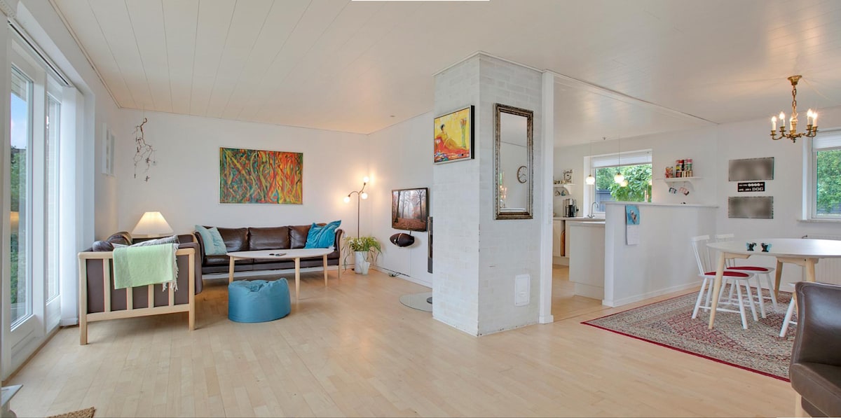 "TROLDHØJ" ist der Ort, an dem Sie den Alltagsstress loslassen können. Das Haus liegt etwas abseits der Straße und ist von Natur umgeben, mit herrlichem Blick auf den Randers Fjord. Die Nacht ist dunkel und ruhig und die Sterne klar. Terrasse auf 2 Seiten des Hauses, Feuerstelle und viel Platz. 2 km zum Kaufmann, Gasthaus und Pizza und 7 km. nach Udbyhøj mit Strand mit blauer Flagge und Hafenleben. Das Haus stammt aus dem Jahr 2015 und ist aus Lärchenholz gebaut, sodass es eine schöne Atmosphäre im Haus gibt. Hier ist die Grundlage für ein paar Tage Erholung.