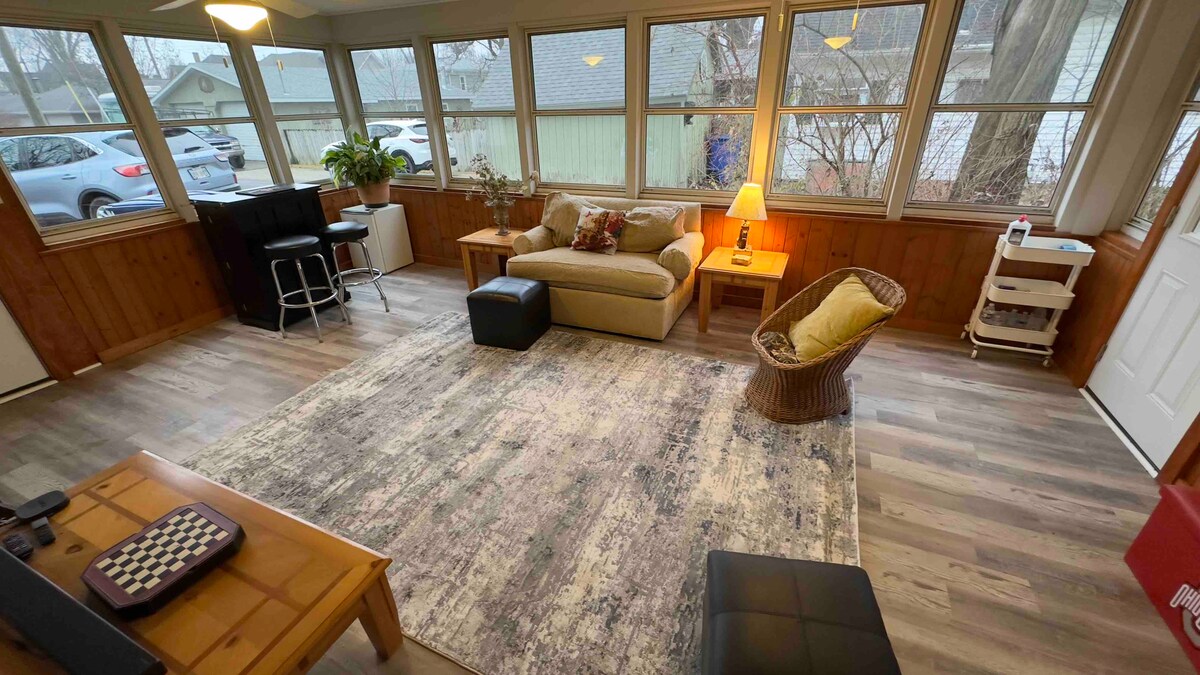🔷Key Features🔷 ☀Single-level, ranch style home ☀Free street parking in front of the home on a quiet one-way street ☀Courtyard patio with outdoor dining and BBQ grill ☀Dog-friendly w/a fee — bring your furry friends; they like vacations too! ☀Electric fireplace ☀0.2mi to Downtown Delaware ☀0.4mi to Ohio Wesleyan University ☀Full-sized washer and dryer ☀Fully equipped kitchen ☀Central heating and cooling (no window AC units!) ☀Owned and managed by a local family with 25+ years of residency