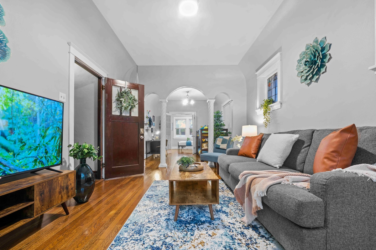 Genieße uneingeschränkten Zugang zu diesem bezaubernden Ferienhaus, auch bekannt als „The Blue Abode“. Es ist ein kleines Haus mit einem großen eingezäunten Garten und 2 Parkplätzen abseits der Straße, eingebettet entlang des 15 Hektar großen Sublette Park in Southwest Gardens, nur wenige Gehminuten von Restaurants und Geschäften auf The Hill entfernt. Dieses gemütliche, haustierfreundliche Haus (100 US-Dollar Haustiergebühr) wurde frisch mit modernen Renovierungen und stilvollen Möbeln aktualisiert und ist perfekt für Alleinreisende und geräumig genug für bis zu 4 Gäste. Duschgel und Shampoo-Spender.