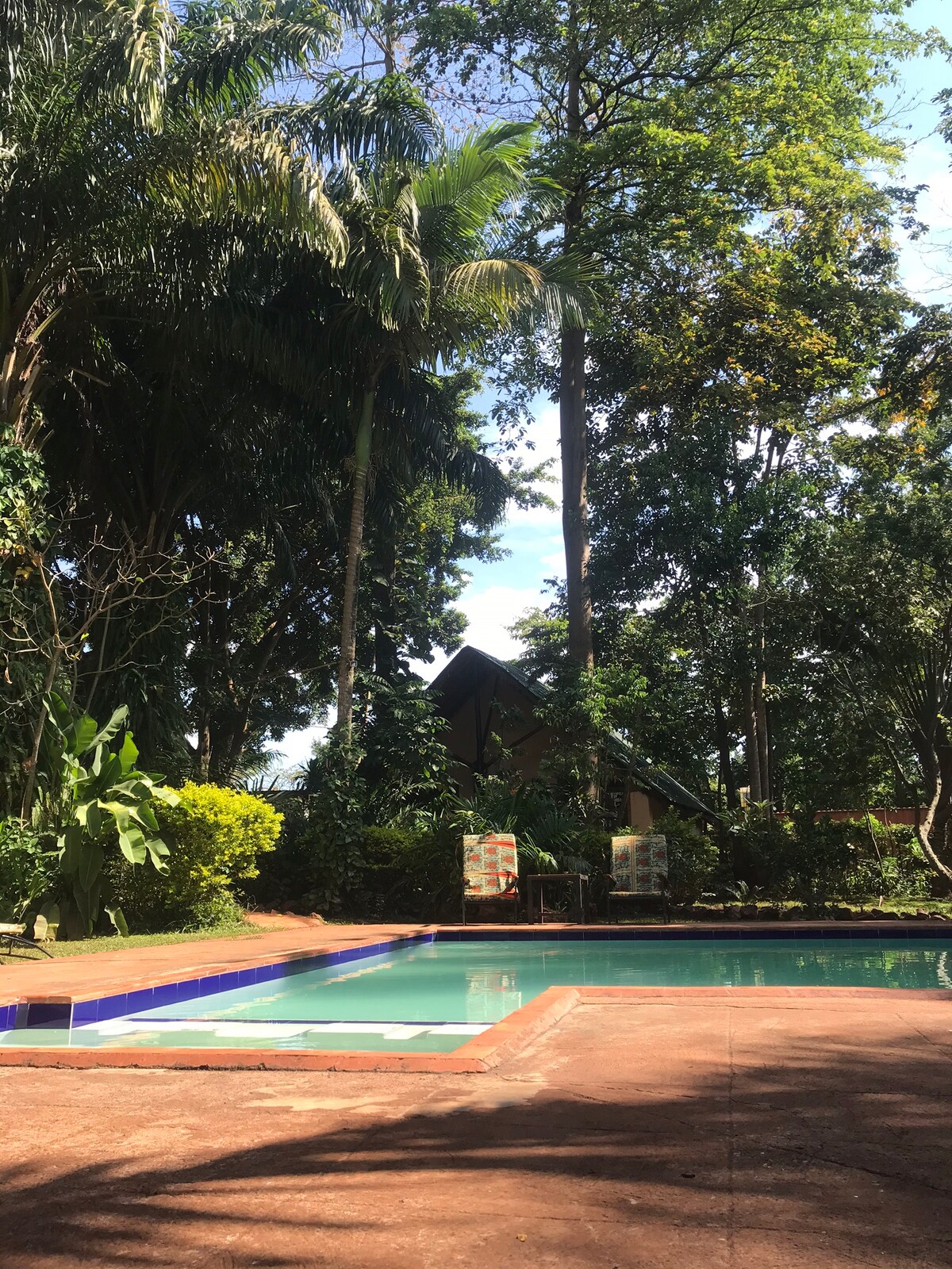 Our home is a perfect family getaway. It is located in the beautiful village Bujagali - 12 min by car to Jinja City and a 10 min walk to the Nile (beautiful sunsets!, SUP, Kayaking, Boat Cruises, restaurants, Quad Biking…). The house has a fully equipped kitchen, a cozy living room, a tropical bathroom with a rainfall shower, a master bedroom, kids room and an office. The colourful garden has a firepit, a pool and a play area. The veranda has comfy rocking chairs, a big dining table and a sofa.