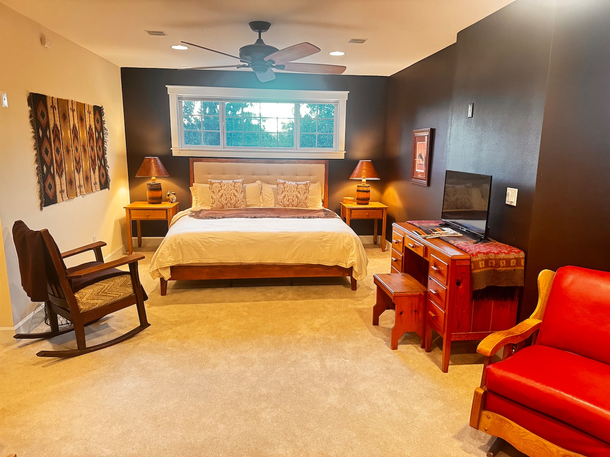 Genieße unsere neu renovierte Gästesuite, perfekt für kurze Aufenthalte von max. 26 Nächten. Cool Blue Waters ist perfekt für Geschäftsreisende, Familien und Hundeliebhaber geeignet. Wir sind zentral im Herzen des historischen Grants Pass gelegen. Die Gästesuite ist an das Haus deines Gastgebers angeschlossen und umfasst: Queensize-Bett, Bürobereich, WLAN, Fernseher, Futon-Couch/Klappbett, begehbarer Kleiderschrank, Küchenzeile mit Kaffee und Frühstücksartikeln, privates Badezimmer, Pflegeprodukte, Pool und privater Terrassenbereich.