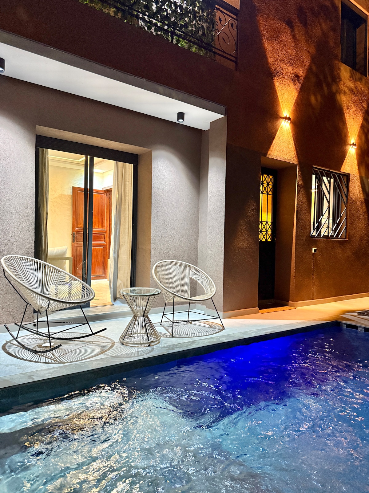 Discover our oasis of tranquility in the heart of Marrakech! An authentic, colorful and comfortable apartment, inviting you to immerse yourself in Moroccan culture. Peaceful bedroom, warm living room and equipped kitchen await you. Also enjoy our private terrace offering a breathtaking view of the swimming pool. Book now for an unforgettable Moroccan experience!