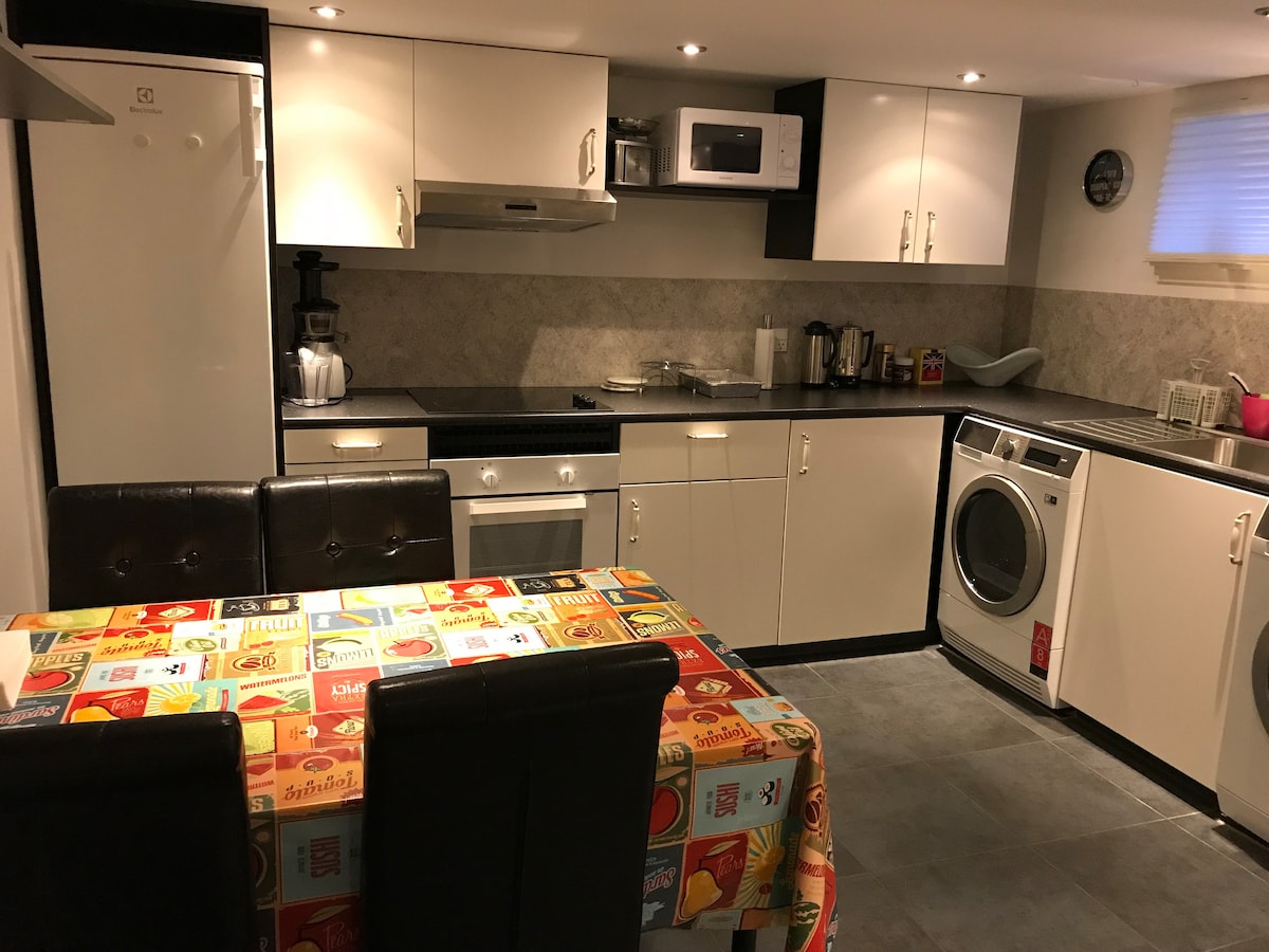 Ferienwohnung komplett neu renoviert mit neuer Küche/Wohnzimmer in einem, die Küche ist mit Induktionsherd, Heißluftofen und Kühlschrank/Gefrierschrank. Große Fliesen auf dem Boden mit Fußbodenheizung. Am Ende des Zimmers gibt es einen Eingang zu einem schönen großen Loft mit bis zu 4 Schlafplätzen. Neues Bad mit Dusche und WC. Neues Schlafzimmer mit Doppelbett, das auf Wunsch für 2 Einzelbetten geteilt werden kann. Schöne Terrasse mit Tisch, Stühlen und Grill. Der Garten ist eingezäunt und mit 2 Türen, sodass du dich komplett schließen kannst, wenn du einen Hund hast. Parkplatz in der Nähe der Tür