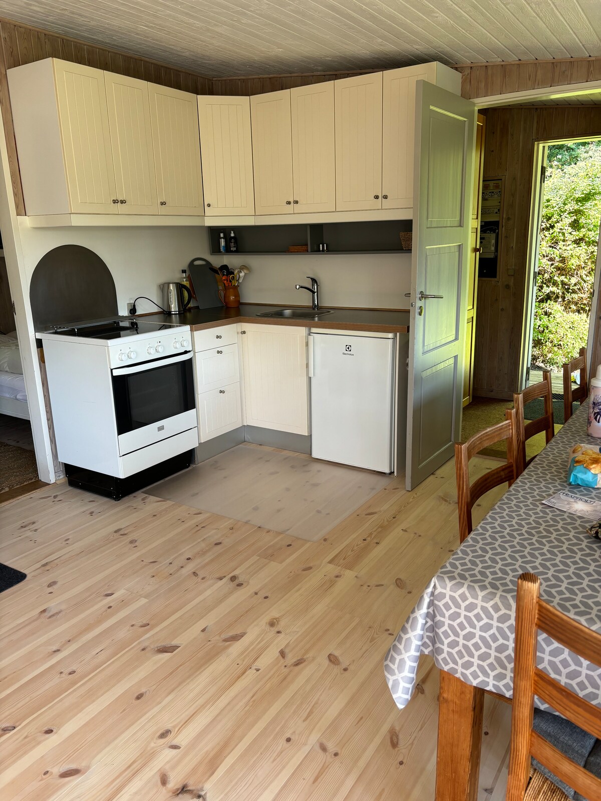 Das Haus verfügt über ein Wohnzimmer, eine Küche, einen Eingangsbereich, ein großes Badezimmer und einen ersten Stock mit einem Schlafzimmer, einer Toilette und einem Zimmer mit einem Schlafsofa. Vom Flur aus gibt es einen Ausgang zu einem schönen Garten in Südlage, mit Grill und mehreren Essbereichen. Kostenlose Parkplätze auf der Straße oder gleich um die Ecke gibt es einen großen Parkplatz mit kostenlosen Parkplätzen rund um die Uhr. Das Haus ist nicht behindertengerecht.