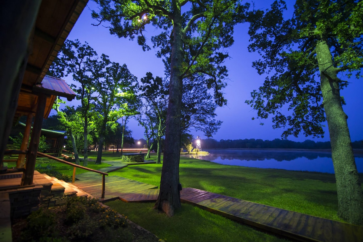 Entspann dich in dieser ruhigen und einzigartigen, gemütlichen Landhütte etwas außerhalb von College Station. Zwanzig Minuten zum Texas A&M Campus/Kyle Field und zehn Minuten zum Santa's Wonderland. Genieße eine voll ausgestattete Küche, eine geräumige ebenerdige Dusche, große Veranden und einen Gasgrill. Entspanne dich in der friedlichen Atmosphäre, in der Rehe, Waschbären und Gürteltiere spielen. Entspanne dich auf der Veranda, auf dem Dock über einem Fang- und Freiluftteich, an einer Feuerstelle oder auf dem Deck unter den Sternen. In der Nähe vieler Sehenswürdigkeiten.