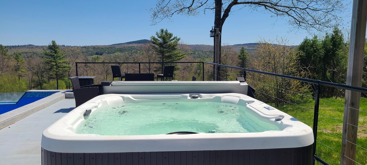 Gemütlicher Aufenthalt. Gemeinsamer Whirlpool, Aussicht, Pool & Feuerstellen