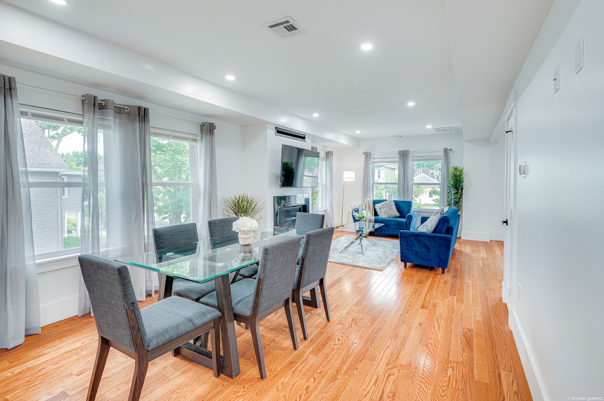 Diese hochwertige und einzigartige Unterkunft mit 3 Betten / 2 Bädern ist nagelneu, zusammen mit allen Möbeln. Es umfasst 1 Kingsize-Bett, 1 Doppelbett und 1 Einzelbett. Die Unterkunft ist extrem sauber und bemerkenswert eingerichtet. Nur 5 Gehminuten vom Bahnhof Ashmont (rote Linie) entfernt, der dich direkt in die Innenstadt von Boston, zum Harvard Square, nach South Boston, Kendall/MIT und U Mass bringt. Es gibt auch viele Parkplätze vor dem Grundstück. Sowie ein lokales Café und ein Dunkin gleich gegenüber der Ashmont T-Station.
