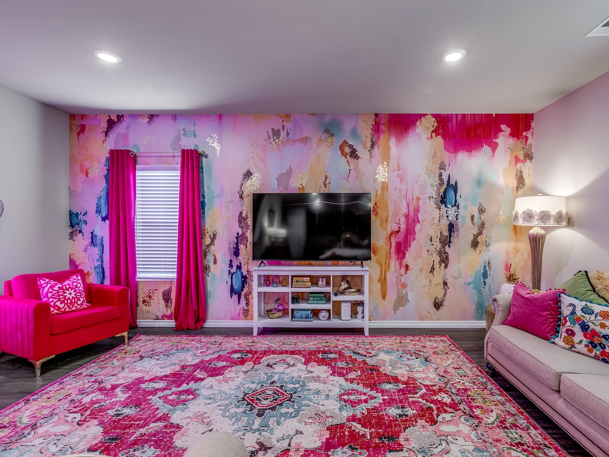 Willkommen in unserem geräumigen Haus mit 4 Schlafzimmern und 2 1/2 Bädern, ideal für Familien! Entspannen Sie sich im Whirlpool, während die Kinder Retro-Spaß mit Pac-Man, Brettspielen und einer Schnitzeljagd haben. Unser schöner Garten und unsere atemberaubende Küche erwarten dich, zusammen mit einer Oase für Kinder im Obergeschoss. Unser Zuhause ist die perfekte Mischung aus Komfort und Spaß. In der Nähe der Stadt bietet es alles, was man für einen unvergesslichen Kurzurlaub braucht!