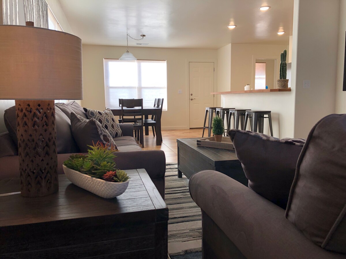 Der beste Ort, um deinen Urlaub in Moab zu genießen! Brandneues Stadthaus mit einer atemberaubenden Aussicht auf die LaSal-Berge und moderne Möbel sind perfekt für deinen Familienaufenthalt oder das Treffen mit Freunden. Unser Haus bietet eine geräumige Küche mit einem kombinierten Wohn- und Essbereich, in dem du Spaß haben, Spiele in unserem Wohnzimmer spielen und einen erstaunlichen und erholsamen Urlaub mit deiner engsten Familie und Freunden verbringen kannst. Am wichtigsten ist, dass du deinen Aufenthalt in Moab, Utah, und eine sichere Reise genießt!