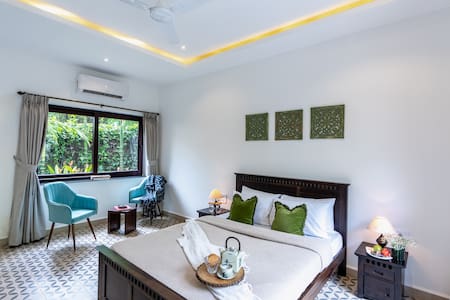 Verdé Nook I 1BHK | Kunst & Grüne Sitzgelegenheiten im Freien I Siolim.