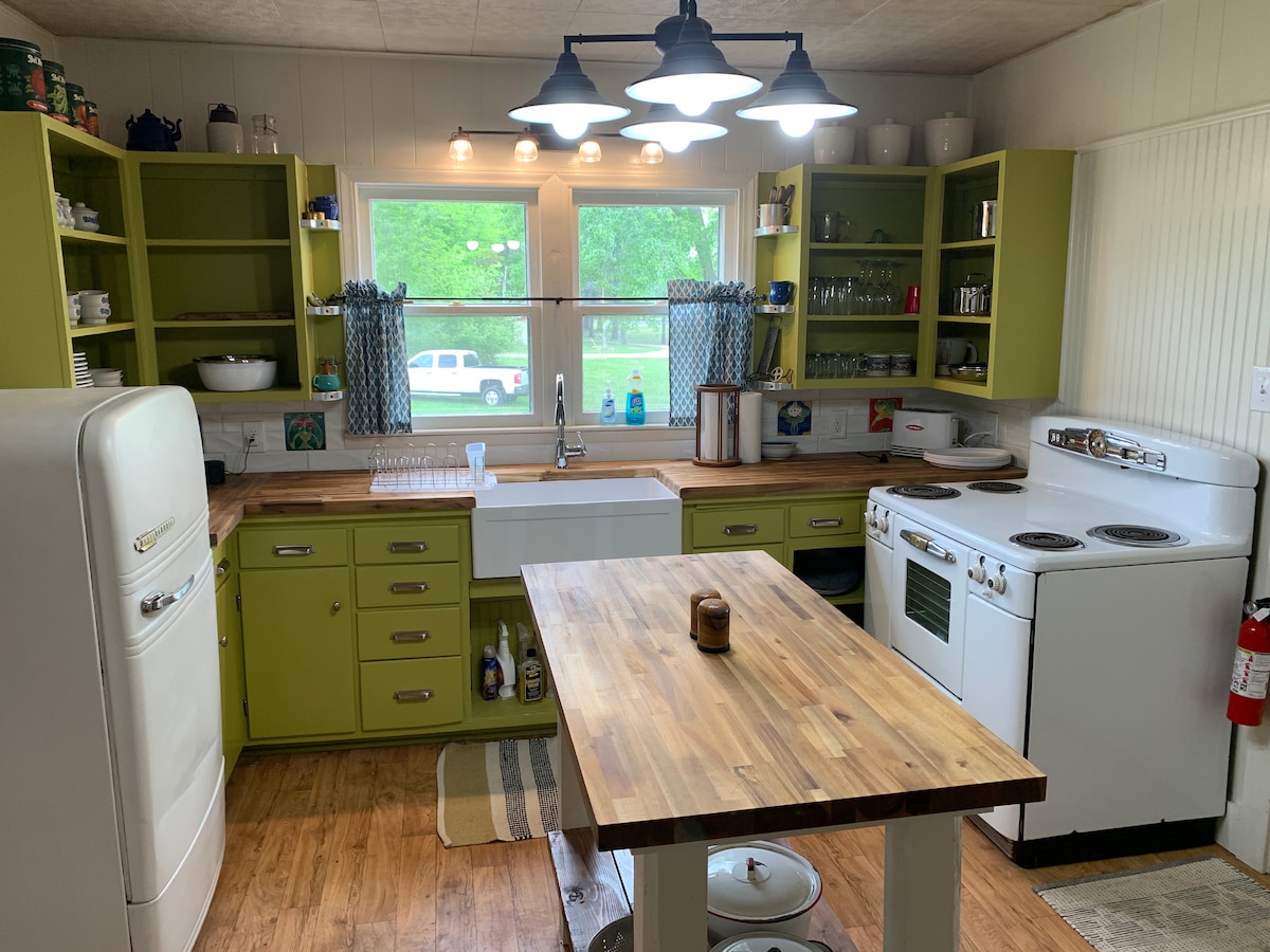 Atmen Sie die Landluft ein und lauschen Sie der Wachtel, während Sie sich auf der hinteren Terrasse entspannen. Egal, ob Sie auf der Durchreise sind oder einen Rückzugsort suchen, dieses umgebaute, hundefreundliche Bauernhaus ruft Ihren Namen. Perfekt für Familien oder Freunde; ihr könnt euch am Esstisch versammeln, Spiele spielen oder die Gegend erkunden. Günstig 6 Meilen südlich der I 70 gelegen, bist du nur eine kurze Autofahrt von vielen tollen Sehenswürdigkeiten wie der Warm Springs Ranch, der University of Missouri, dem Katy Trail, Arrow Rock und vielem mehr entfernt.