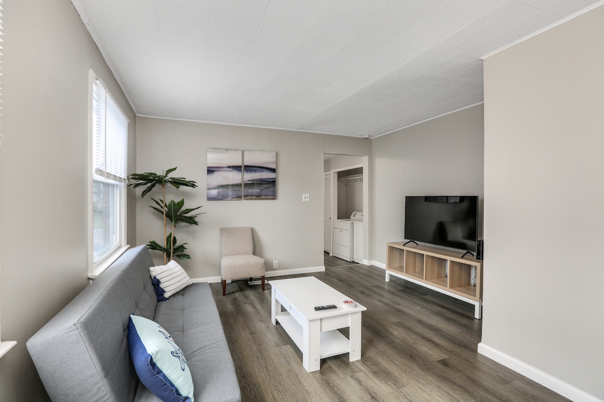 Gemütliche Wohnung mit Küchenzeile und eigenem Bad befindet sich im zweiten Stock (kein Aufzug) eines schönen viktorianischen Hauses, das zum Apartmenthaus wurde. Die Wohnung verfügt über ein Queensize-Bett, einen Esstisch und Stühle, zwei gepolsterte Stühle, eine Küchenzeile mit Mikrowelle (kein Backofen), einen kleinen Kühlschrank und eine Kaffeemaschine, ein eigenes Bad mit Badewanne/Dusche, einen Smart-TV und ein Xfinity-WLAN. Kostenlose Waschmaschine und Trockner stehen im Keller zur Verfügung.