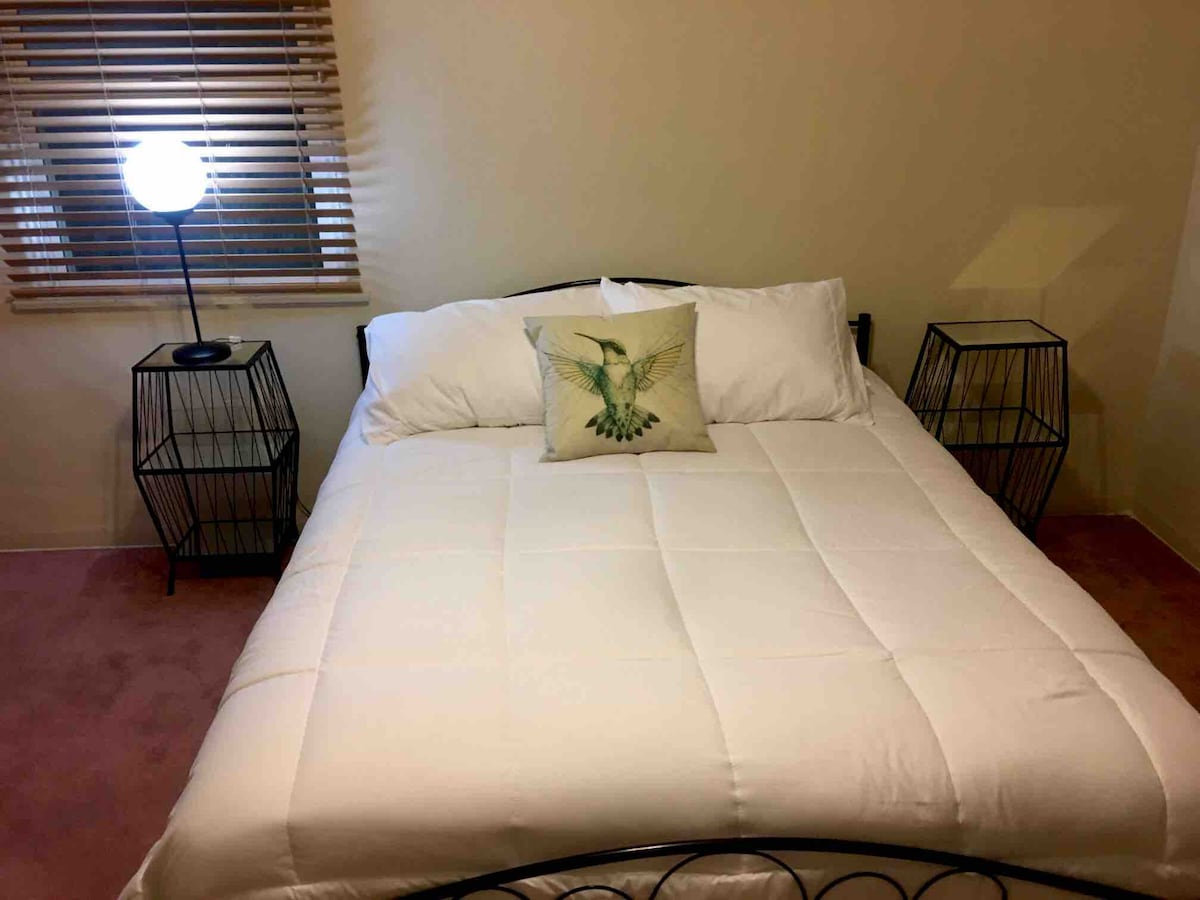 Ruhiges und gemütliches, eigenständiges Gästehaus mit eigenem Eingang und eigenem Check-in. Kein Kontakt mit anderen Gästen, keine Räume werden mit anderen geteilt — alles ist ausschließlich für Ihren privaten Gebrauch. Verfügt über ein Queensize-Bett, ideal für Paare, Klimaanlage und Heizung, Schreibtisch, Ventilator und Rauchmelder. Genieße eine private Küche für leichtes Kochen, eine ebenerdige Dusche und Verdunkelungsvorhänge für einen erholsamen Schlaf. Große Fenster sorgen für viel natürliches Licht. Perfekt für Paare, Alleinreisende oder mobiles Arbeiten.