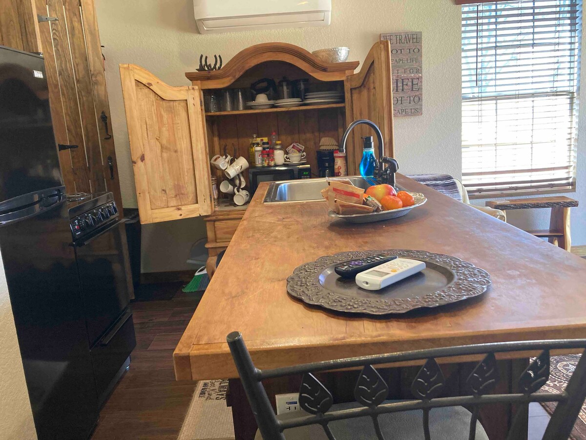 Entspann dich in dieser besonderen und ruhigen Unterkunft. Nur wenige Minuten von allen Sehenswürdigkeiten der Region Waco entfernt, in Woodway, Texas. Neu renovierte Dusche und Fußböden. Mit einem offenen Raum mit einem Queensize-Bett, einem großen Futon und einer niedlichen Ecke mit einem Doppelbett. Die Küche verfügt über eine Mikrowelle, einen Toaster, zwei Kochplatten und einen Schnellkochtopf. Ein großer Kühlschrank mit Gefrierfach vervollständigt diesen Raum, der wie ein zweites Zuhause wirkt. Zu den Annehmlichkeiten gehören kostenfreier Internetzugang/WLAN, ein Grill im Freien und ein Picknicktisch.