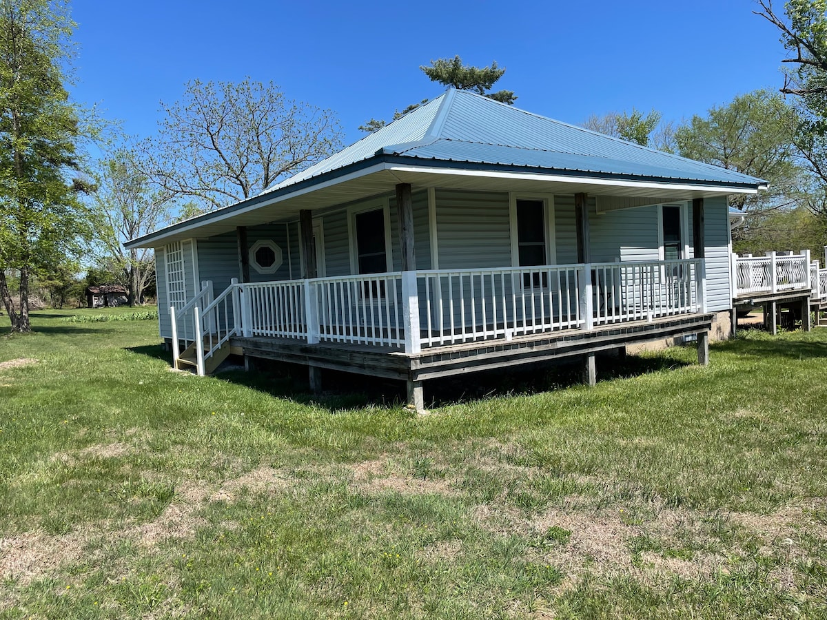 Komm und übernachte auf der Ranch! Da wir keinen Farmhelfer mehr brauchen, bieten wir die Hütte als Ort zum Entspannen und Genießen der Ozarks von ihrer besten Seite an! Genieße die atemberaubende Aussicht, Sonnenaufgänge und Sonnenuntergänge, frische Landluft, den Sternenhimmel und natürlich Kühe. Alles von deiner Veranda aus. Das Haus wurde kürzlich neu gestrichen, eine Badewanne hinzugefügt und der Gaskamin aufgerüstet. Die Küche ist komplett möbliert und ein Propangrill ist vorhanden. Parke dein Fahrzeug in der Werkstatt neben dem Haus. Lebe das einfache Leben!