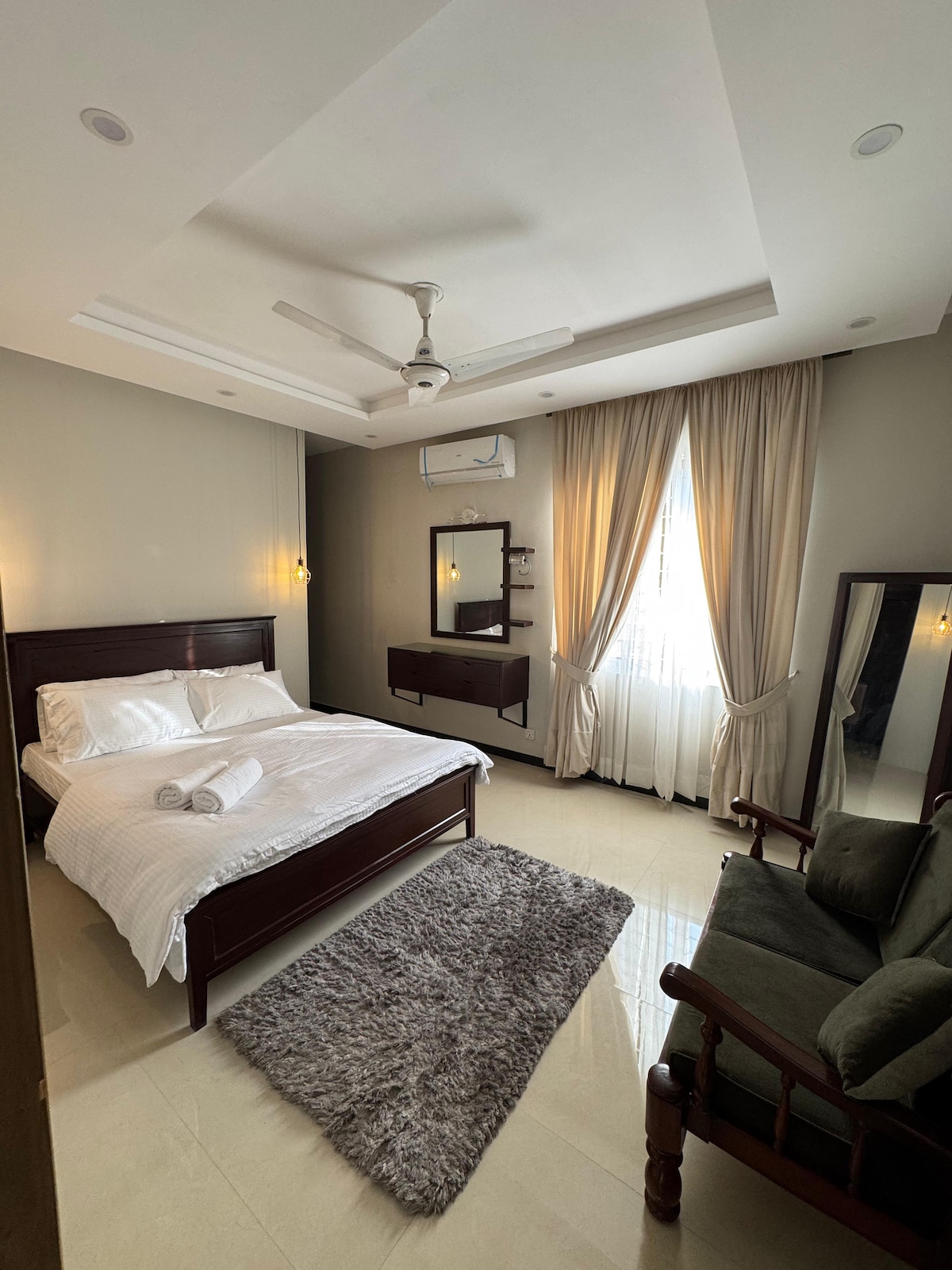 Welcome to our cozy 4-bedroom serviced (With dedicated chef and helper) Air BnB, Perfect for families. Located in a secure gated community. The TV lounge features a 65” TV, comfy seating, Netflix. The modern kitchen is perfect for preparing family meals. Each bedroom offers plush bedding n ample storage. Newly renovated bathrooms are spotless and have hot water. Centrally located, find a 24/7 pharmacy, food, grocery store, a hospital within a 2min walk. Comfort and convenience await you