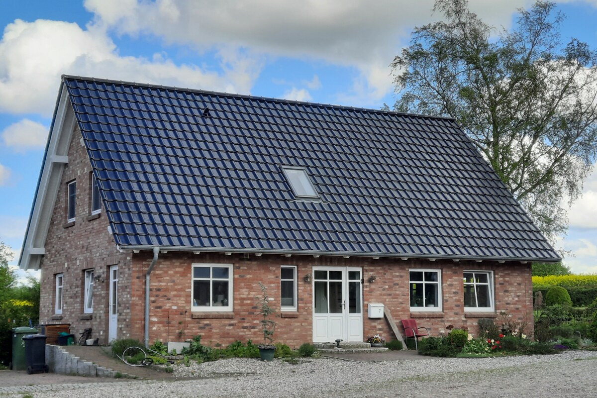 nur 1 knapper km bis zum Strand! In den malerischen Angeliter Hügeln südlich der Flensburger Förde gelegen, am Naturschutzgebiet mit wilden Wiesen und schönem Buchenwald ... da findest Du unseren Hof, urgemütlich und naturnah.