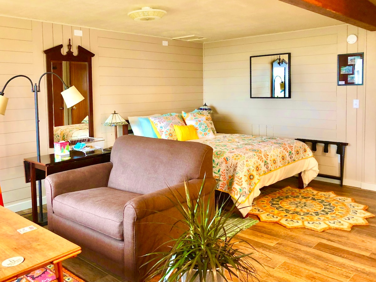 Entspanne dich in diesem schönen Ferienhaus aus den 1930er Jahren. Kürzlich renoviert, hat aber immer noch diesen Hüttencharme. Geräumiges Studio mit herrlichem Blick auf die Netarts Bay, bequemes Queensize-Bett, ausklappbares Doppelbett, moderne Küchenzeile. Die gemeinsame Wand wurde schallisoliert. Du bist nur einen kurzen Spaziergang die Treppe hinunter zur Bucht entfernt, oder du kannst dich in Stühlen vor dem Haus entspannen. Perfekter Ort, um die Pelikane und Reiher zu beobachten oder einen schönen Sonnenuntergang zu genießen.