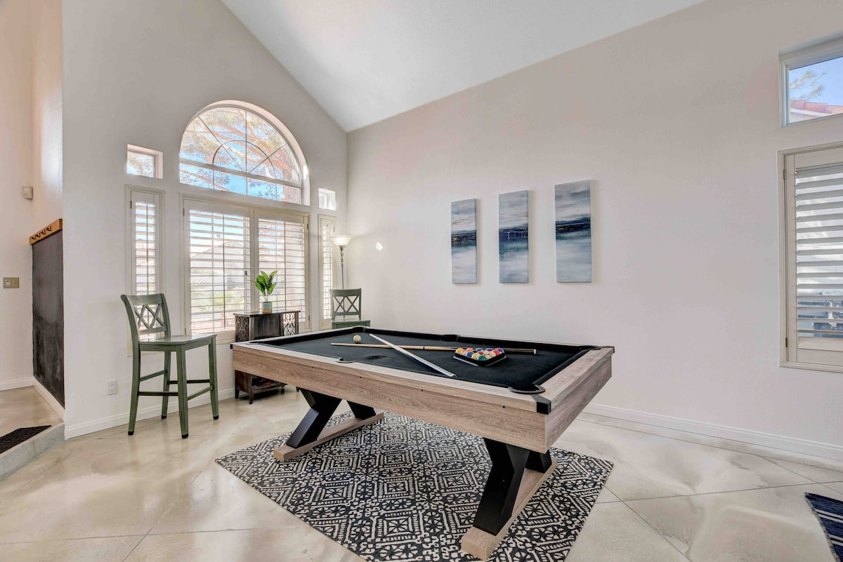 Deine Familie wird in der Nähe von allem sein, wenn du in dieser zentral gelegenen Unterkunft übernachtest. Viele Sehenswürdigkeiten innerhalb von 10 Minuten. Blitzschnelles Internet für alle WLAN-Geräte und Spiele. 65-Zoll-Fernseher, um all deine Lieblingssendungen anzuschauen. Schöner privater Pool zum Entspannen des Tages mit Grill und Kamin unter einem beleuchteten Pavillon, um unsere schönen Nächte in Vegas zu genießen. Plus voll ausgestattete Küche, Essbereich, Waschmaschine und Trockner. Ganz zu schweigen von einem verstellbaren Stehpult, an dem du dich um dein Chef-Geschäft kümmern kannst.