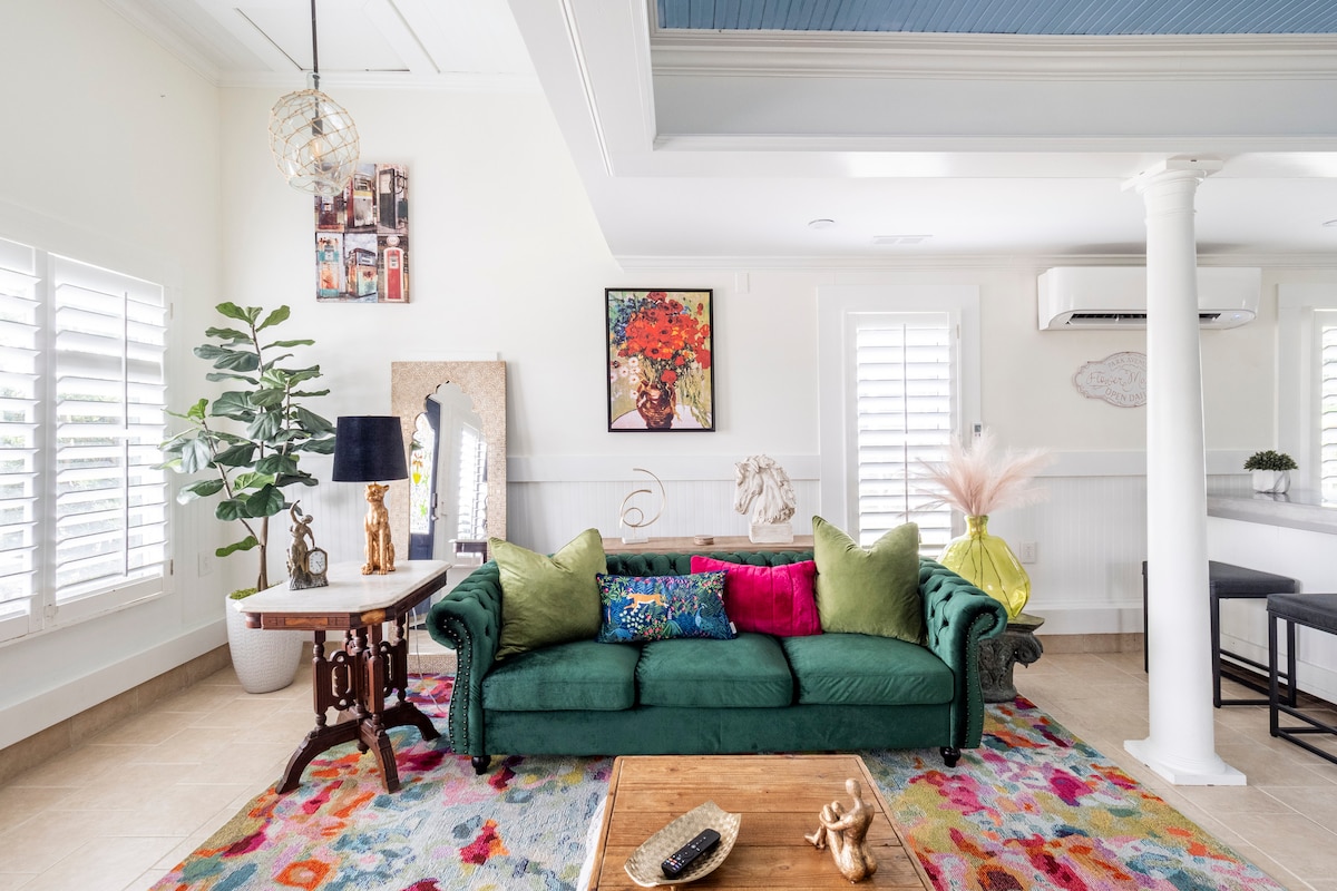 Gäste sagen, wir sind „gemütlich, ruhig, sicher, privat und bequem zu allem“. 1 Meile zum historischen Viertel und zu den Flüssen. Komplett renoviert. Hoch, sodass du die Vögel sehen und hören wirst, die für dich singen. Privates, 400 Quadratfuß großes, freistehendes Gästehaus mit Schlafzimmer, Badezimmer, offenem Wohnzimmer/Küche und Balkon. Wir begrüßen alle Hintergründe, einschließlich der LGBTQ-Community. Rabatte für längere Aufenthalte. Dieses schöne, voll möblierte, gemütliche Gästehaus ist perfekt für Tagessätze, die ein zweites Zuhause möchten :)