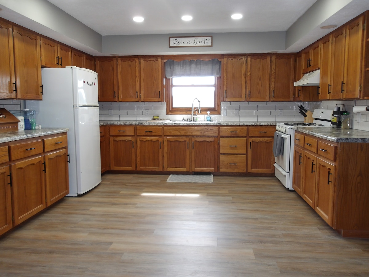 4 Schlafzimmer - 3 Badezimmer zu Hause. Das zweite Wohnzimmer verfügt über ein Schlafsofa. Diese Unterkunft bietet bequem Platz zum Schlafen. 10. Dieses gemütliche Haus befindet sich in einer ruhigen Straße, nur wenige Blocks von der Innenstadt von Newton entfernt. Tolles Angeln am Newton Lake ist etwa 10 Meilen entfernt. Genieße einen Outdoor-Film in einem der wenigen Drive In Theatres (saisonal) im Bundesstaat. Der Sam Parr State Park verfügt über einen schönen Picknickplatz mit einem einfachen Spaziergang durch den Wald rund um den See. Und viele andere unterhaltsame Aufenthalte, um Spaß zu haben!
