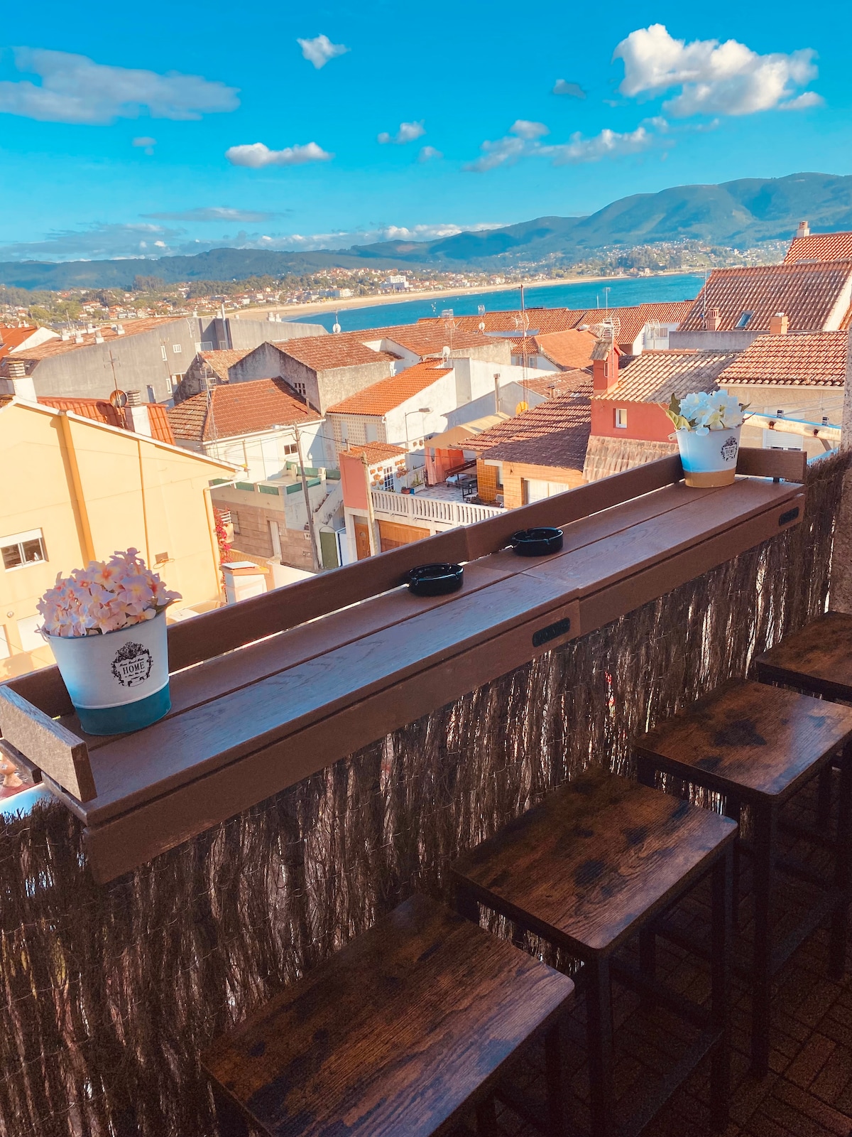 Direkt am Meer in Baiona: charmante Unterkunft mit modernen Annehmlichkeiten, helles Schlafzimmer mit Blick auf die Bucht von Baiona und ihre Strände, Panorama-Wohnzimmer, voll ausgestattete Küche und Badezimmer mit Regendusche. Komfort und Entspannung an der Küste. Es hat einen Berater. Es gibt keinen Parkplatz.