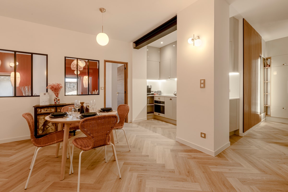„Le 4“ ist eine luxuriöse⭐️⭐️⭐️⭐️, gemütliche und voll ausgestattete Wohnung im historischen Zentrum von Nîmes. Sie befindet sich in den Fußgängerzonen des Wappens, verfügt aber über eine öffentliche Tiefgarage 100 m entfernt (Parking Porte Auguste). Es ist die ideale Wohnung, um das französische Rom als Paar oder Familie zu besuchen.