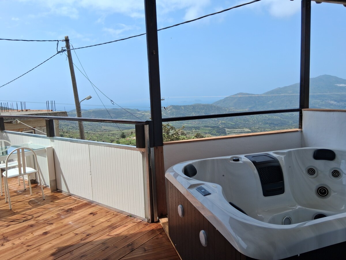Umgeben von Olivenbäumen und mit einem atemberaubenden Panoramablick wird dich dieses solarbetriebene Haus immer wieder überraschen! Küche und Wohnzimmer sind nicht durch eine Wand getrennt und dies schafft eine offene und komfortable Umgebung. Wir bauen unser Essen auf biologische Weise an und wir haben 8 Hühner und 2 Ziegen, die uns jeden Tag mit frischer Milch und Eiern versorgen. Verschwende also nicht deine Zeit in überfüllten Resorts und langweiligen Wohnungen. Komm zu uns nach Hause, lerne unsere charmanten Ziegen kennen und erlebe etwas Neues!
