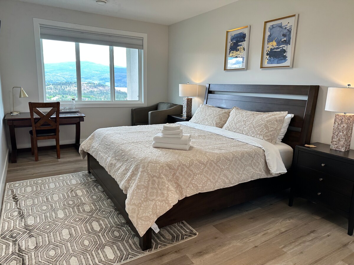 Wake up in paradise in this brand new modern studio suite located on lakefront with your own private beach and a 5 min stroll to downtown. A gorgeous view of the lake and walking distance to a park, marina, public beach and downtown Main Street. Enjoy watching the sunrise from your king bed or enjoy the sunsets on your patio by the fire pit. When you arrive you’ll know this is where you were meant to be! Licensed B&B issued by the town and meets BC short term legislation.